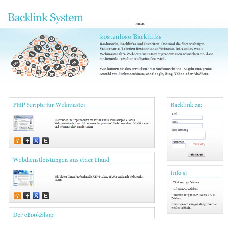 Backlink System Proist ein PHP-Script um Links zu verbreiten und das ganze koste...