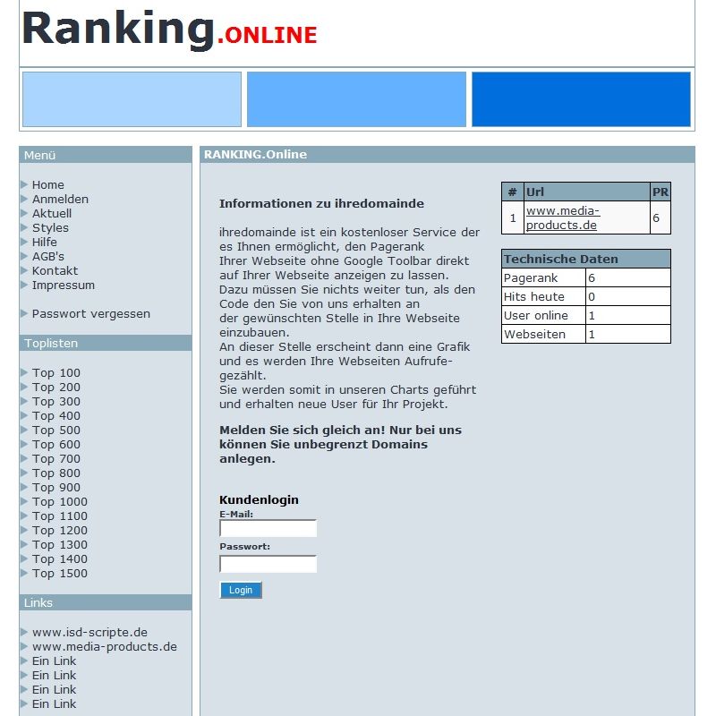 Hier bieten wir Ihnen ein Neuartiges Pagerank Portal. Hier können sich Ihre U...
